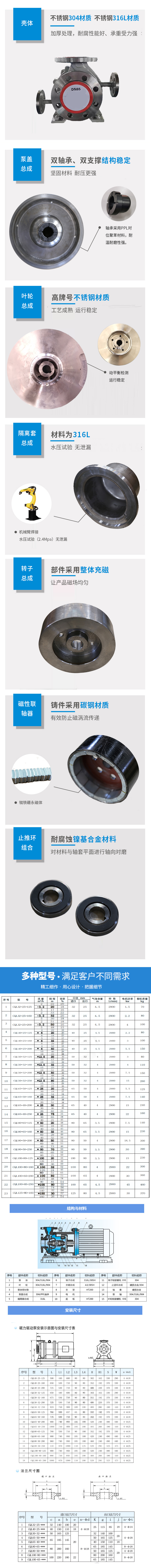 用途 磁力泵結構磁緊湊、外形美觀、體積小、噪音低、運行可靠、使用維修方便。可廣泛應用于化工、制藥、石油、電鍍、食品、電影照相洗印、科研機構、國防工業等單位抽送酸、堿液、油類、稀有貴重液、毒液、揮發性液體,以及循環水設備配套、過濾機配套。特別是易燃、易爆液體的抽送,選用此泵則更為理想。 設計特點 CQL型磁力驅動泵(簡稱磁力泵)是將永磁聯軸器的工作原理應用于離心泵的新產品,設計合理,工藝先進、具有全密封、無泄漏、耐腐蝕等特點,其性能達到國外同類產品的先進水平。不銹鋼磁力泵以靜密封取代動密封,使泵的過流部件處于完全密封狀態,徹底解決了其他泵機械密封無法避免的跑、冒、滴之弊病。磁力泵選用耐腐蝕、高強度的不銹鋼作為制造材料,因此它具有良好的抗腐蝕性能,并可以使被輸送介質免受污染。 設計壓力:1.6MPa 法蘭標準:HG/T20592-09